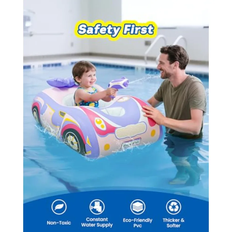 2 Pack Automatic Water Gun with Toddler Pool Float Inflatable Car Baby Pool Swimming Float Pool Toys for Girls Boys Blue Purple