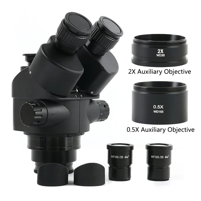3.5X-90X Continuous Zoom Simul Focus Focal Parfocal Trinocular Stereo Microscope Head WF10X/20MM Eyepiece 0.5X 2X Barlow Lens