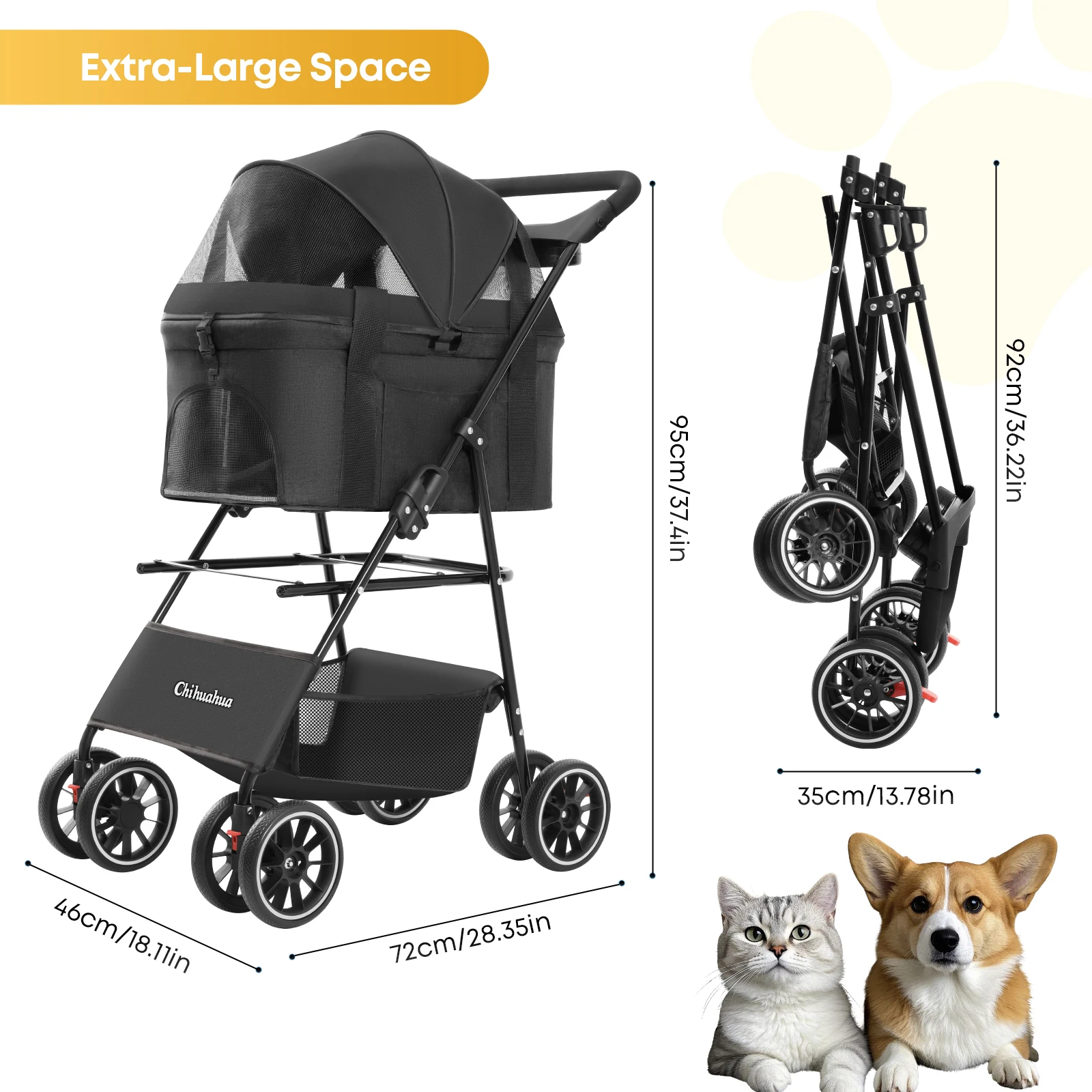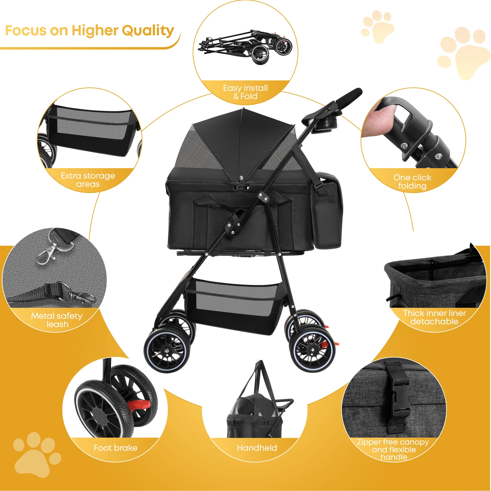 3 in 1 Pet Stroller for Medium Dogs Cats – Portable Foldable Dog Stroller with Removable Carrier, All-Terrain 4 Wheels Cat Strol