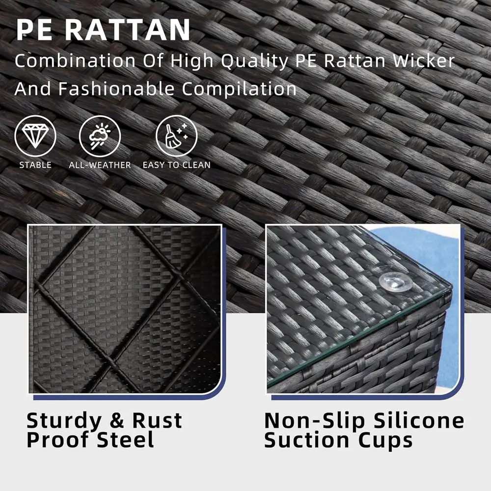 5-Piece Outdoor Patio Furniture Set, Sectional Sofa with Weather-Resistant Rattan, Ottoman, and Glass Table, Ideal for Backyard