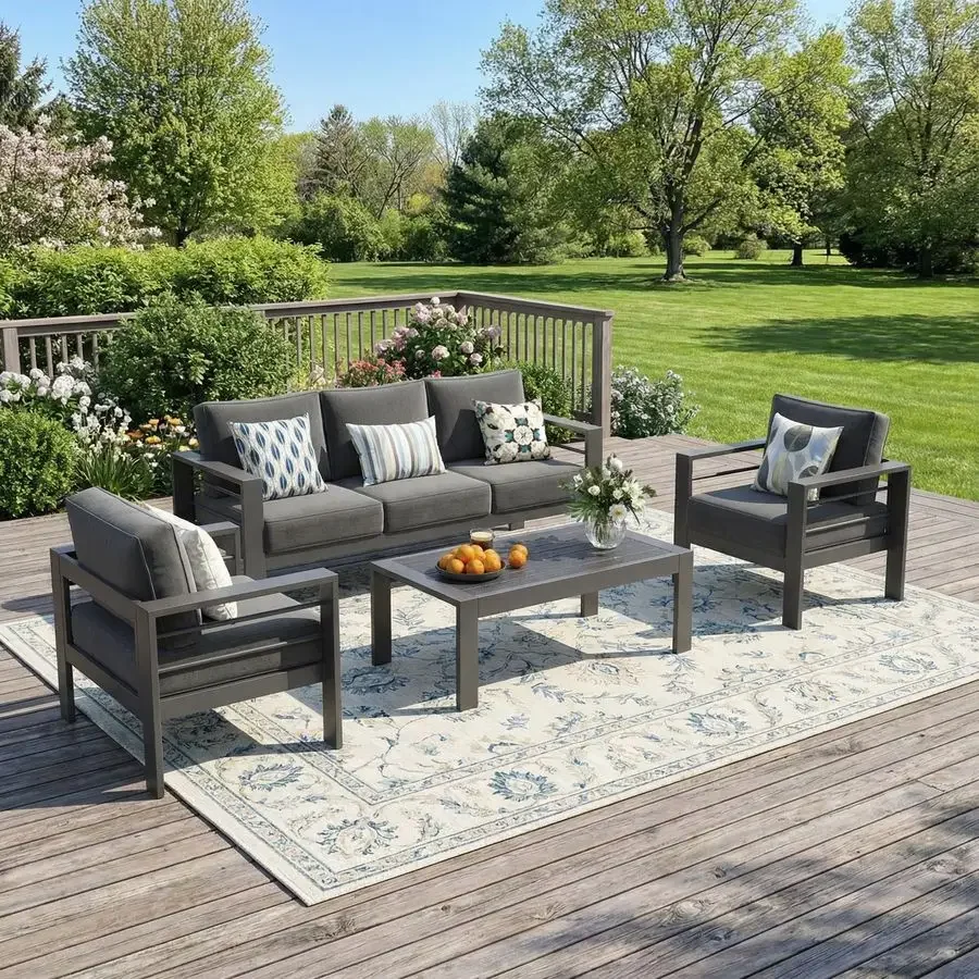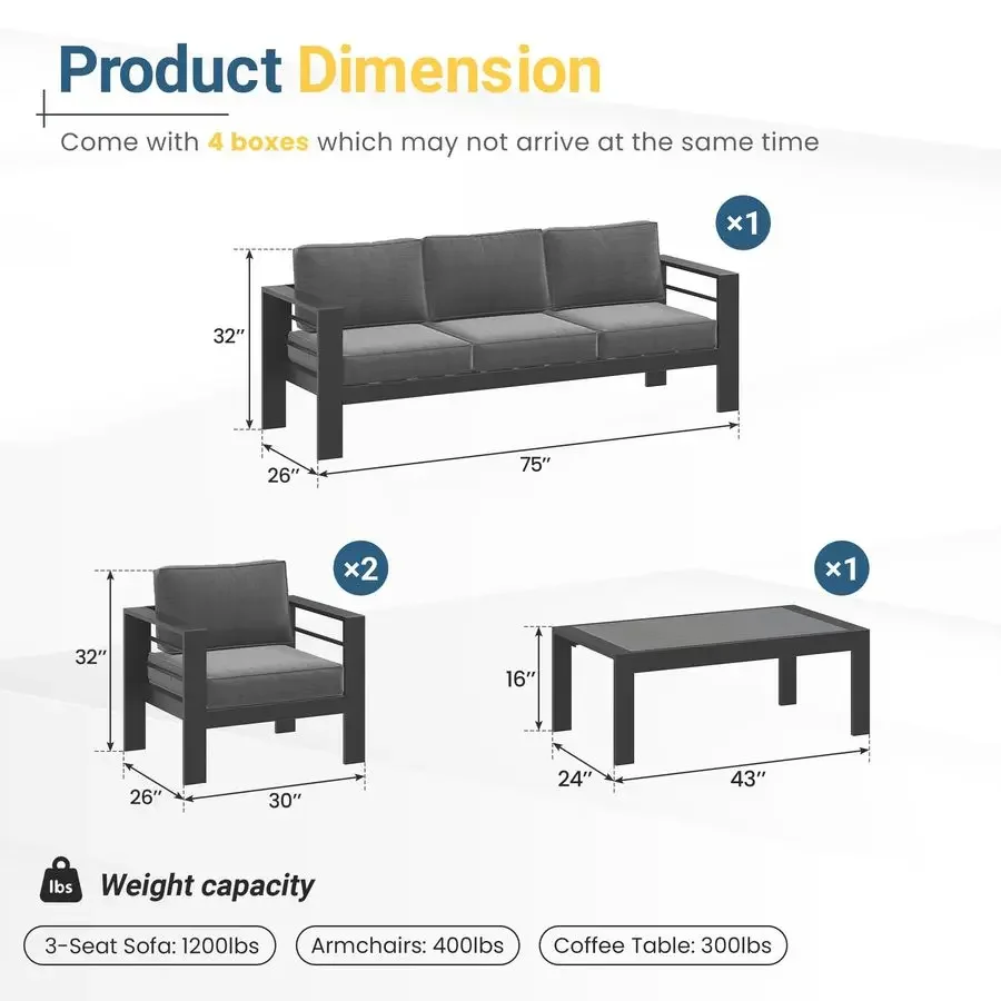 Aluminum Outdoor Patio Furniture Set, 5 Seats Patio Sectional Sofa with 5 Thick Cushion, Outdoor Patio Set with Coffee Table fo