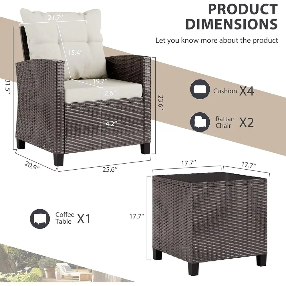 Be the first to review “Compact Outdoor Wicker Bistro Set with Cushioned Chairs and Glass Table for Patio, Garden, Backyard, Balcony, Poolside (Beige)” Cancel reply