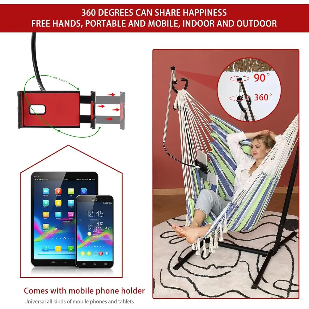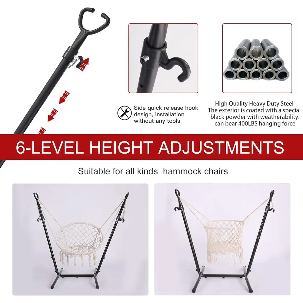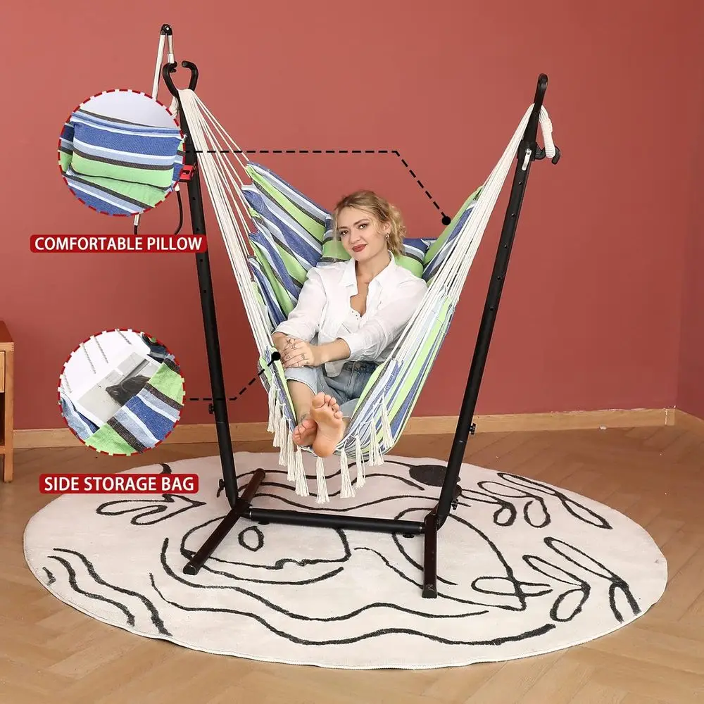 Double Hammock Chair with Stand, Outdoor Swing Seat, Indoor-Outdoor Porch Furniture, Adjustable, Supports Up to 400 lbs