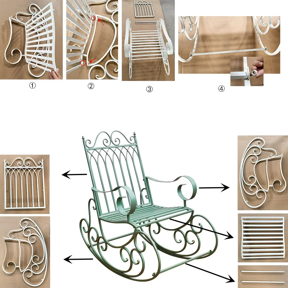 European style metal garden rocking chair, suitable for outdoor patio, yard and garden, comfortable armchair