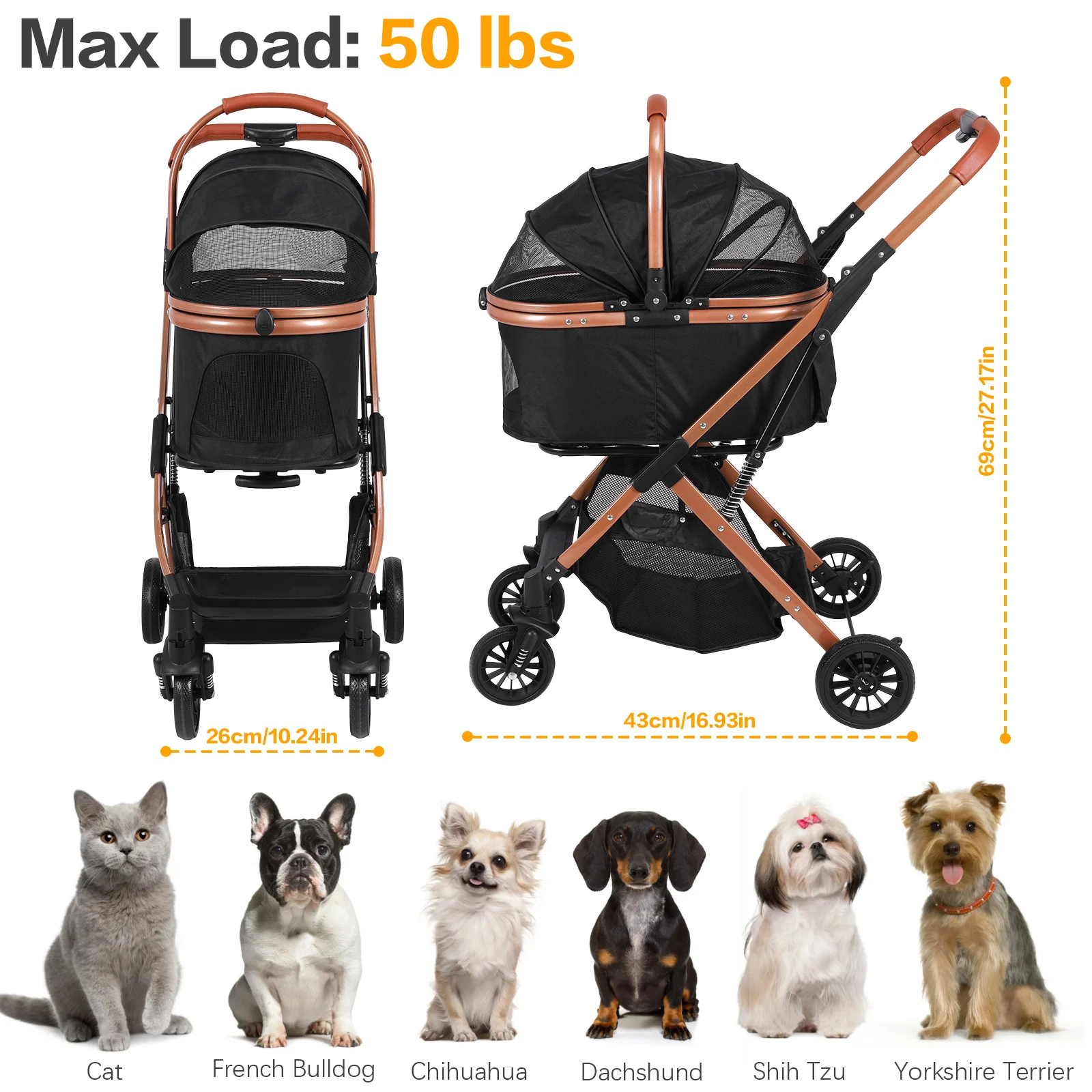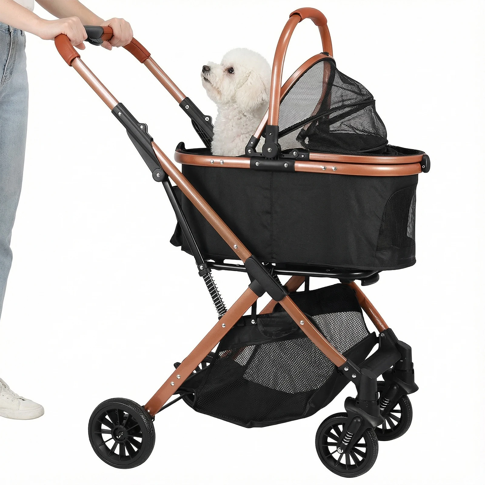 Folding Stroller All Terrain 4 Wheels Puppy Cage Jogger Stroller with Detachable Carrier with Sun Shades for Large & Medium Dogs