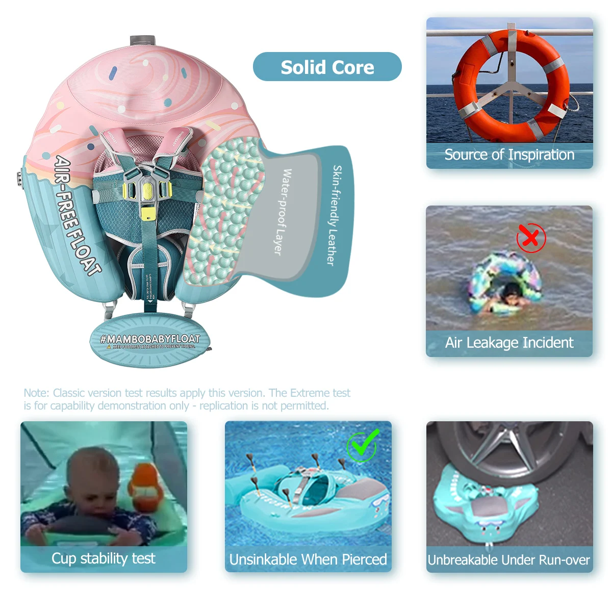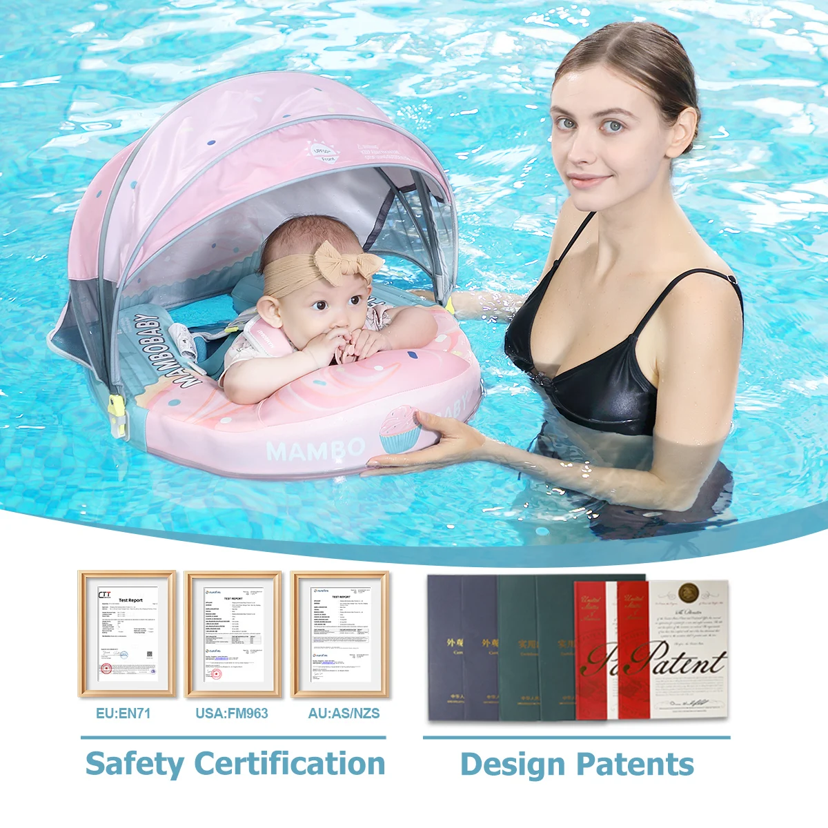 Mambobaby Float No-Slip Safe Harness ST-Cup Cake B503-150-W-Z Safe Core No Inflation No Leaks Baby Swim Ring Toddler Pool Float