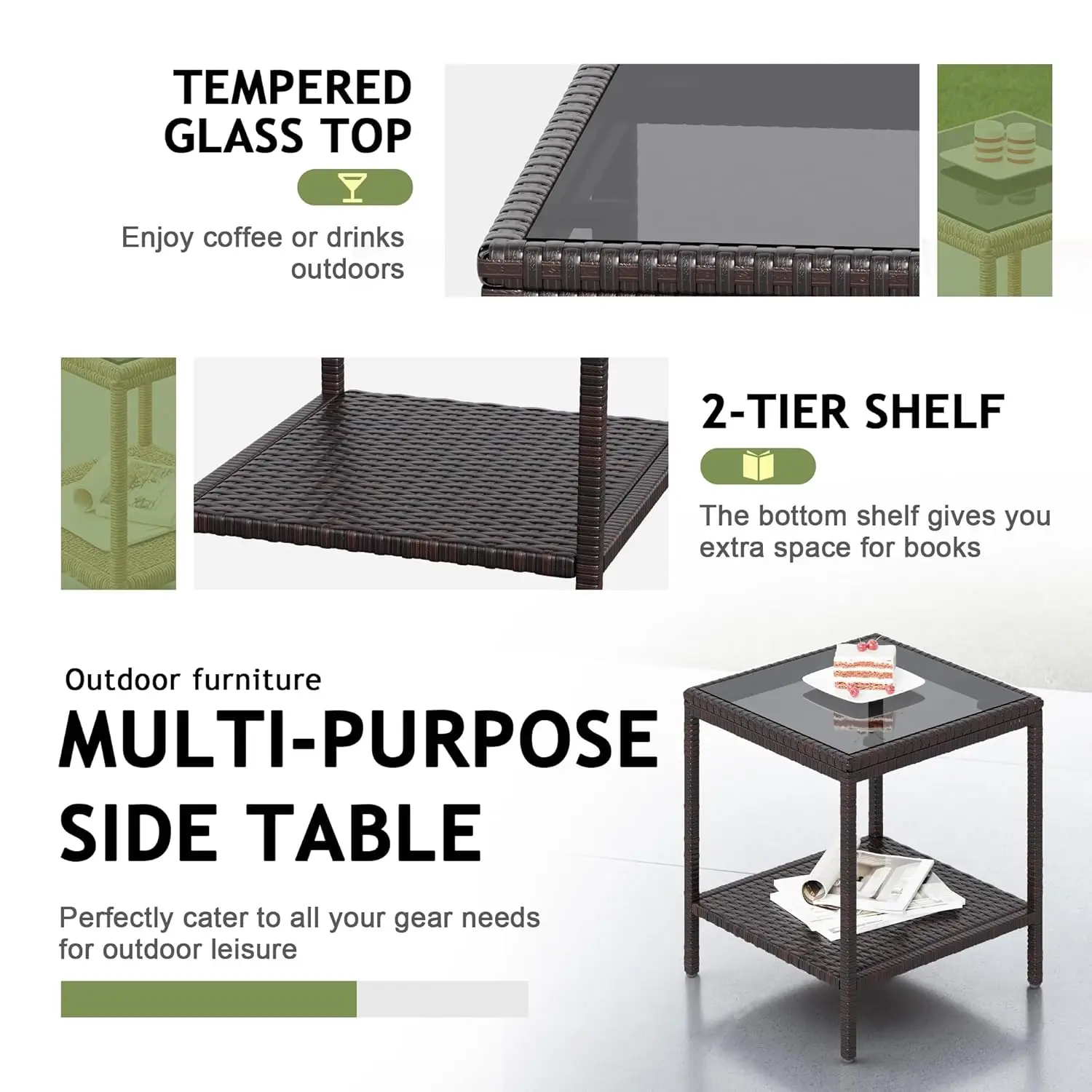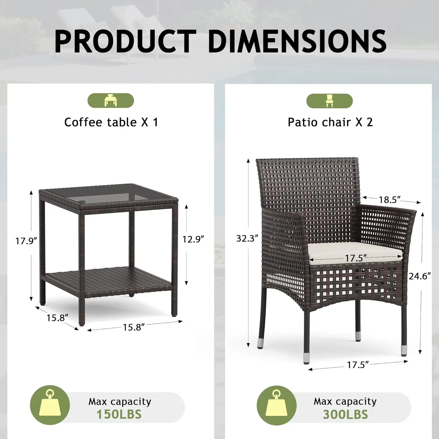 Be the first to review “Outdoor 3 Piece Patio Furniture Set Wicker Chairs with Glass-top Coffee Table for Garden, Balcony, and Porch (Brown), Customized” Cancel reply