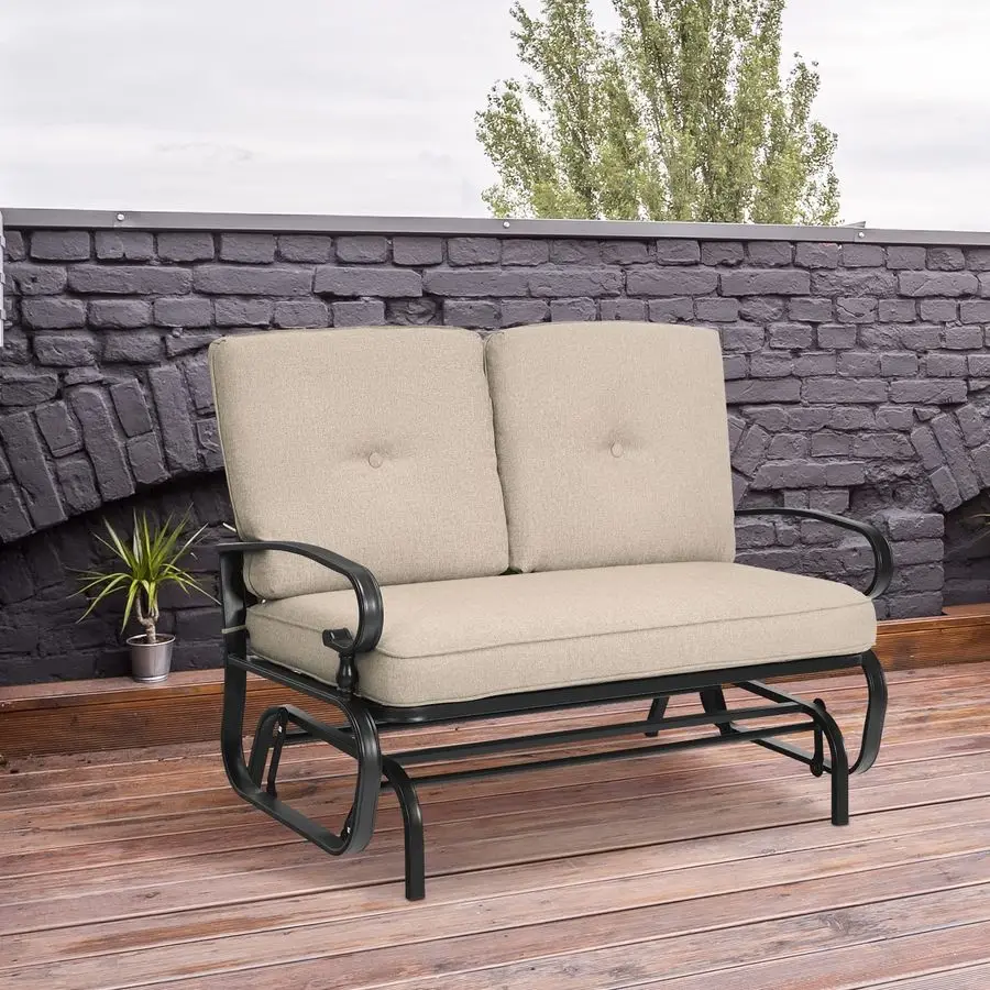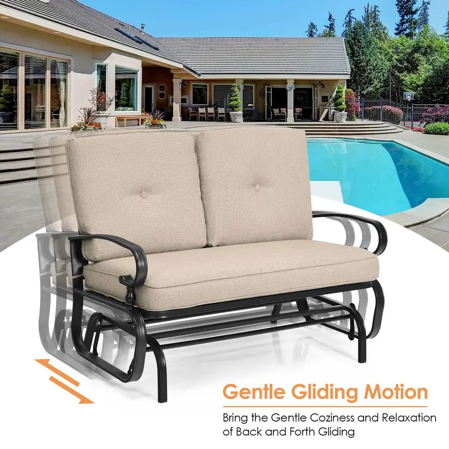 Outdoor Swing Glider Bench Patio Loveseat with Comfortable Cushions, 2Person Rocking Chair for Porch, Balcony, Garden, Poolside
