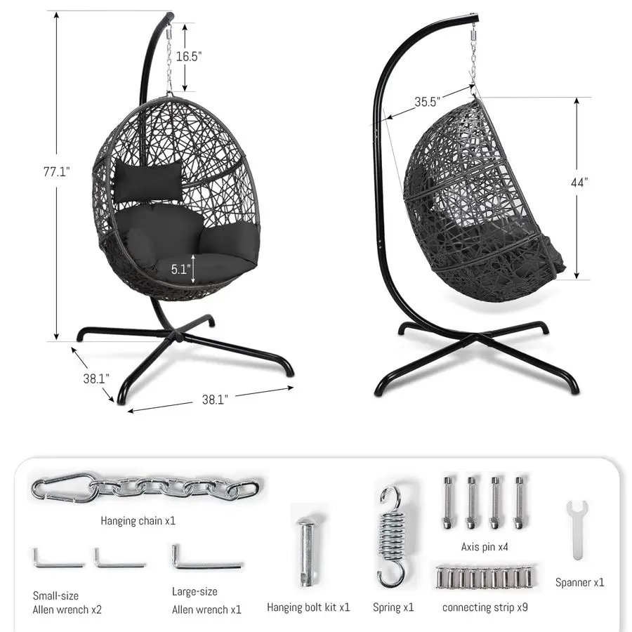 Oversized Hanging Egg Chair with Stand, Indoor Outdoor Wicker Bird Cage Swing Chair, Patio Hammock EggShaped Swinging Chair with