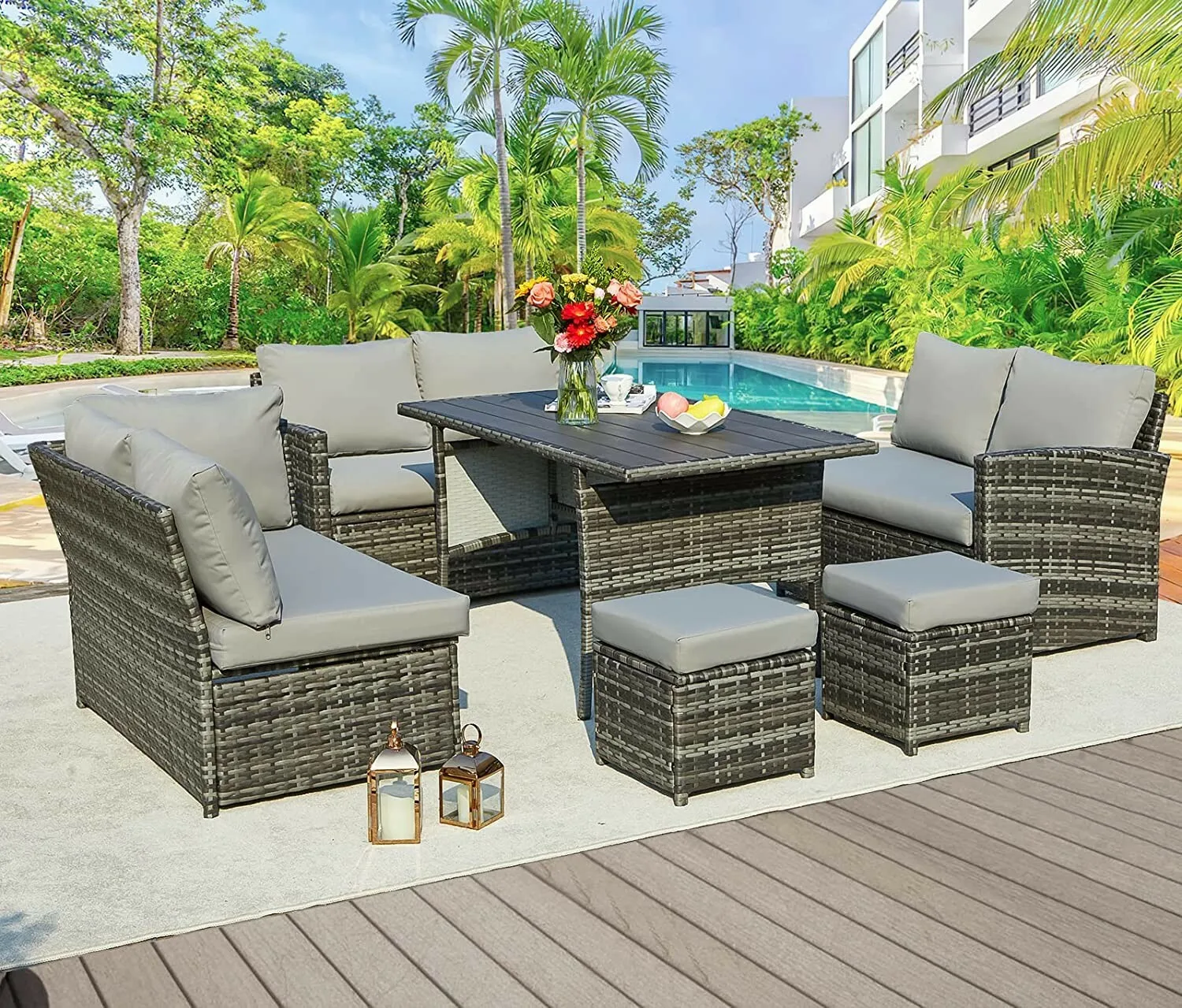 Patio Furniture Sets 7-Pieces Outdoor Sectional Sofa Rattan Wicker Sofa W/ Table