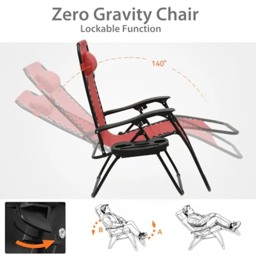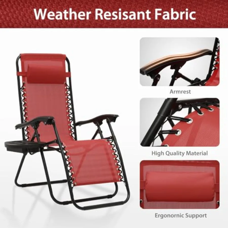 Zero Gravity Chairs Portable Folding Reclining Lounge Chairs with Adjustable Pillow and Cup Holder Trays for Outdoor Patio Beac